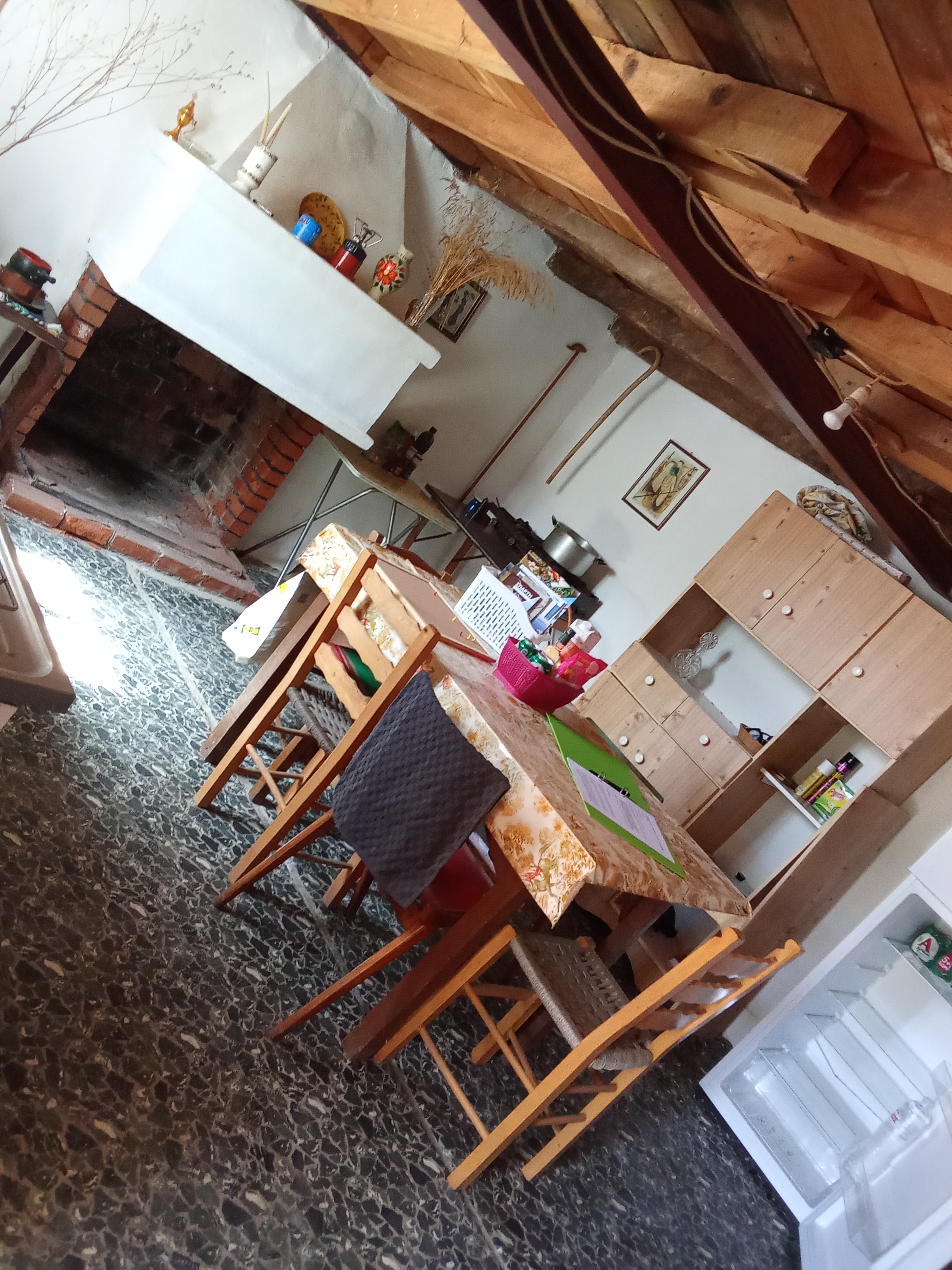 The Juicy Olive is a traditional olive farmers house, located in the small village of Kalivea Theologou, approximately 15 minutes drive from the town of Sparti, on the Peloponnese of Greece mainland. Aligned with the traditional construction of these houses, it is arranged over two floors with the kitchen and bathroom downstairs and two bedrooms with five beds in total being located upstairs. There is an additional single bed in the kitchen down stairs if needed. The property importantly has no Wi-Fi and no television although an array of games and books are provided and growing in their numbers. The property is equipped with all of the amenities that you would need for a comfortable stay, cooking facilities via a gas stove inside and barbecue outside, all crockery and utensils, fridge, as well as pots and pans. There is a washing machine that can be used. In the bathroom a sink, toilet and small bath with a shower over it providing hot showers. There is even an inflatable padding pool. You just need to take your own towels. There is however no air conditioning in the property although the window shutters play a part in keeping the inside cool and there is some lovely outside shade offered by the grape vine canopy in the garden.